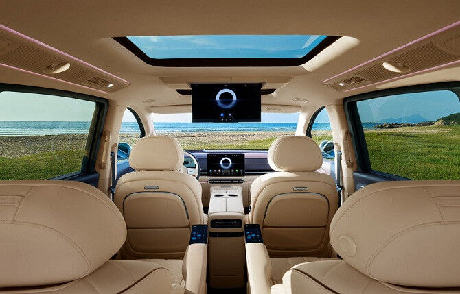Кресла минивэна оснащены 26-точечной системой массажа и расширенными зонами подогрева. Кроме этого, в автомобиле имеются интеллектуальный кокпит Huawei Hongmeng Cockpit HarmonySpace 5 и система помощи водителю Huawei ADS 4 с лидаром на крыше.