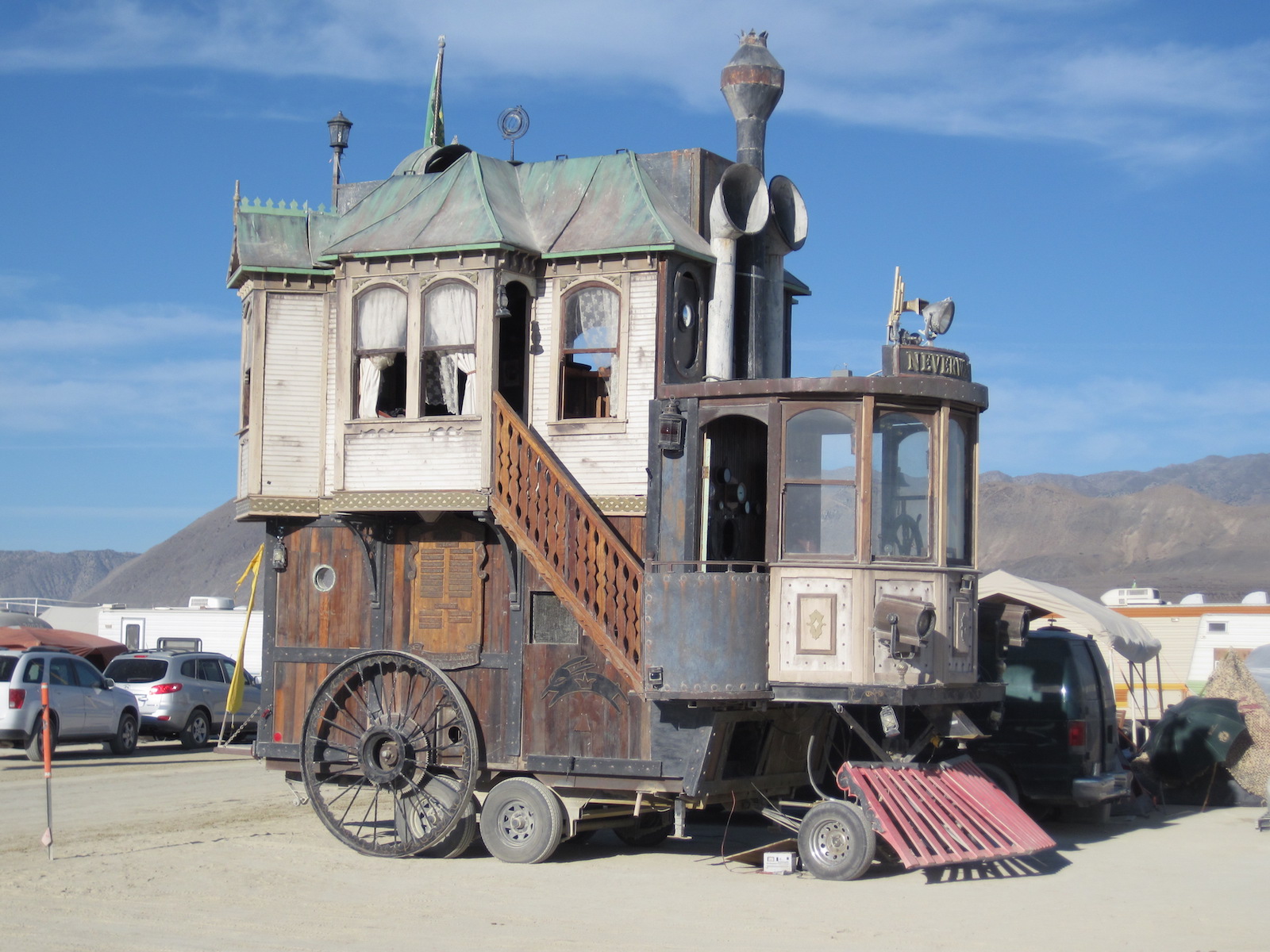 Этот особняк на колесах длиной и высотой 7 метров, и шириной 3,5 метра, был построен в 2006 году членами Академии Неестественных Наук для Ежегодного фестиваля современного искусства Burning Man в Неваде, США. На 75% дом изготовлен из переработанных материалов.